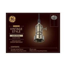 Ge, pndsocs/bl72/gm-1tp, gun metal, brown finish, vintage light pendant fixture, black cord, recommended for use with medium base bulbs, includes 1 single socket fixture, 2 bracket mounting screws, 2 wire caps, 2 decorative mounting screws, california title 20.