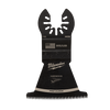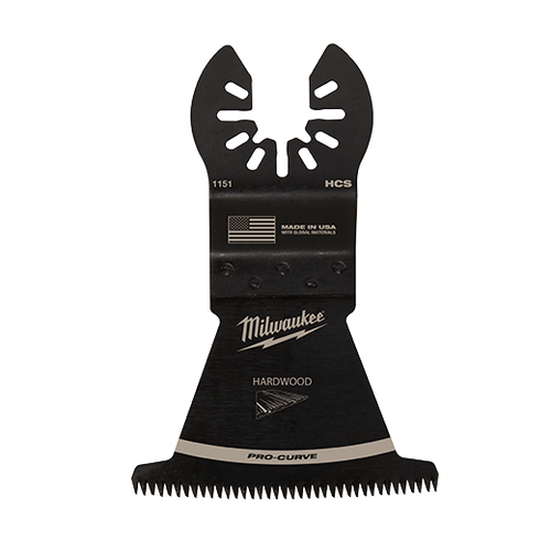 Our Universal Fit OPEN-LOK™ HCS Japanese Tooth PRO-CURVE™ Hardwood Blades for Oscillating Multi-Tools are made from premium high carbon steel. This hardwood multi-tool blade has precision triple ground Japanese teeth and now includes PRO-CURVE™ giving you greater control and accuracy. This is Milwaukee's best multi-tool blade for making precise cuts with a smooth finish in hardwood and can also be used in other woods, PVC, drywall, and other soft materials. This MILWAUKEE® blade delivers up to 2X faster cuts than the previous generation of high carbon steel blades with a deeper plunge cut and a wider 1-3/8" cutting width. This multi-tool blade is designed and made in the USA with global materials. Available in 1-3/8", 1-3/4" and 2-1/2" widths in 1, 3, or 10 packs.